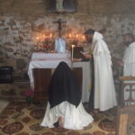 Se aprovadas, ingressam no postulantado que dura em torno de seis meses. Depois desse período, fazem o noviciado e depois, a profissão dos votos. A Santa Missa e toda a liturgia é rezada em latim, segundo o Rito do Santo Sepulcro de Jerusalém, também conhecido como Rito Carmelitano. Consideramos a Eucaristia como o ápice de nossa vida. Amamos profundamente a Santa Igreja Católica. Defendemos a posição sedevacantista, ou seja, de que atualmente não temos um Papa legítimo ocupando a Sé de Pedro, e por isso nós apoiamos a eleição de um verdadeiro Papa para que a Igreja volte a ter uma autoridade legítima. Procuramos atender os pedidos de Nossa Senhora e unimos nossa oração, trabalhos, jejuns e penitências às intenções do Imaculado Coração de Maria. Procuramos fazer subir, do nosso Carmelo, nosso louvor e adoração como uma fumaça de incenso, ao Deus Uno e Trino. Que Ele seja bendito para sempre!