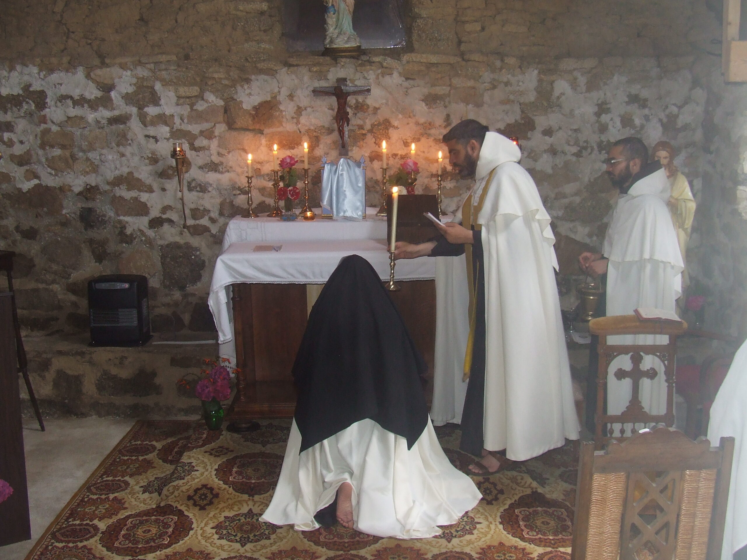 Se aprovadas, ingressam no postulantado que dura em torno de seis meses. Depois desse período, fazem o noviciado e depois, a profissão dos votos. A Santa Missa e toda a liturgia é rezada em latim, segundo o Rito do Santo Sepulcro de Jerusalém, também conhecido como Rito Carmelitano. Consideramos a Eucaristia como o ápice de nossa vida. Amamos profundamente a Santa Igreja Católica. Defendemos a posição sedevacantista, ou seja, de que atualmente não temos um Papa legítimo ocupando a Sé de Pedro, e por isso nós apoiamos a eleição de um verdadeiro Papa para que a Igreja volte a ter uma autoridade legítima. Procuramos atender os pedidos de Nossa Senhora e unimos nossa oração, trabalhos, jejuns e penitências às intenções do Imaculado Coração de Maria. Procuramos fazer subir, do nosso Carmelo, nosso louvor e adoração como uma fumaça de incenso, ao Deus Uno e Trino. Que Ele seja bendito para sempre!